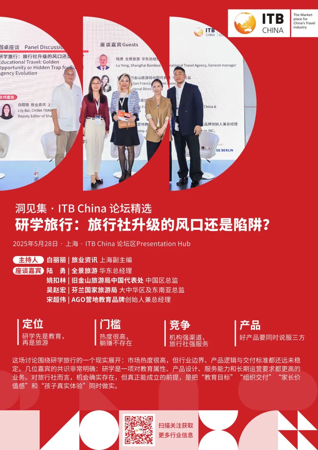 想进一步了解去年这场论坛如何讨论“研学先是教育,再是旅游”,以及什么样的项目更容易形成长期价值,欢迎文末下载 ITB China 2025论坛精华笔记《研学旅行:旅行社升级的风口还是陷阱?》